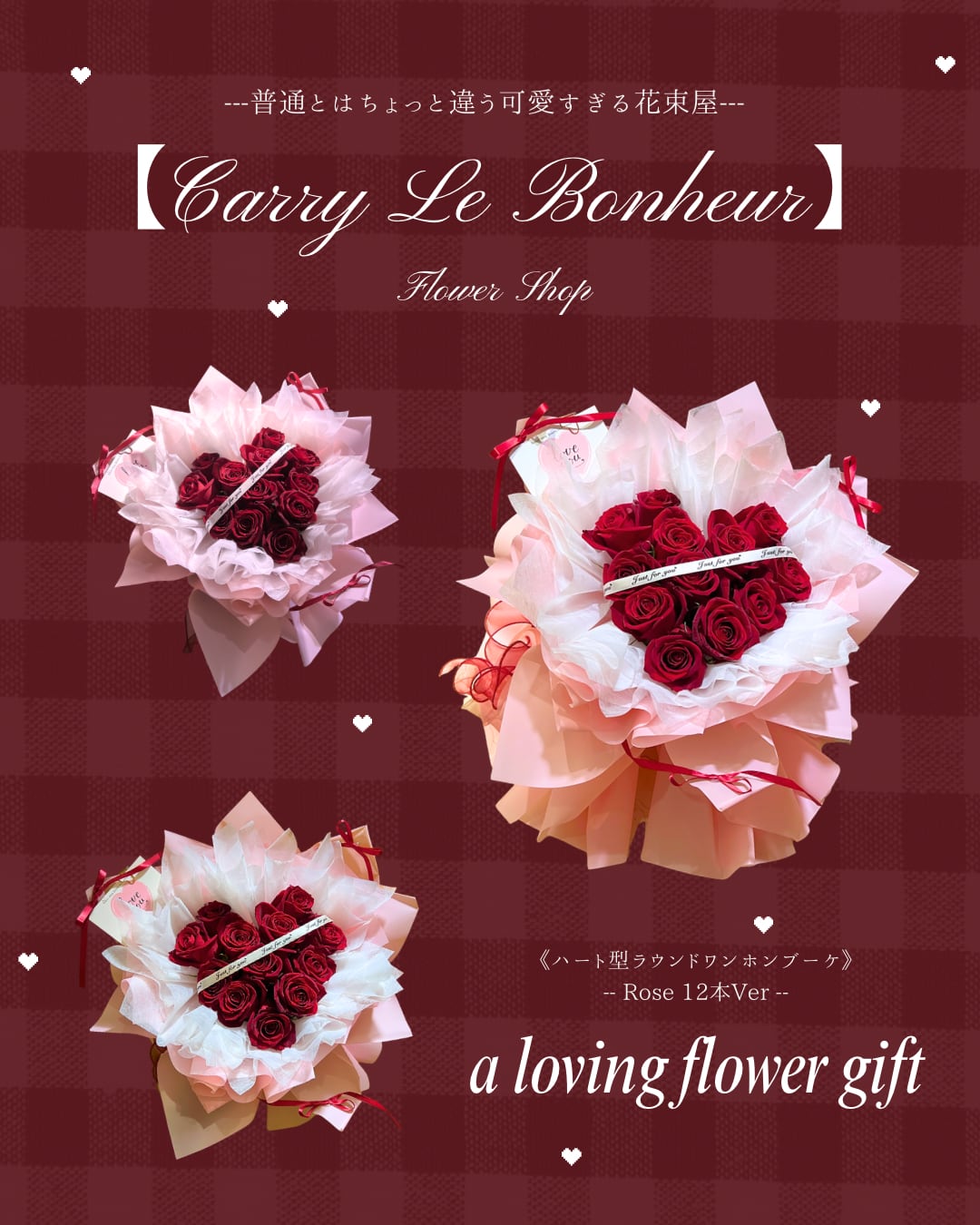 ♡ハート型ラウンドワンホンブーケ♡バラ12本【配送用】