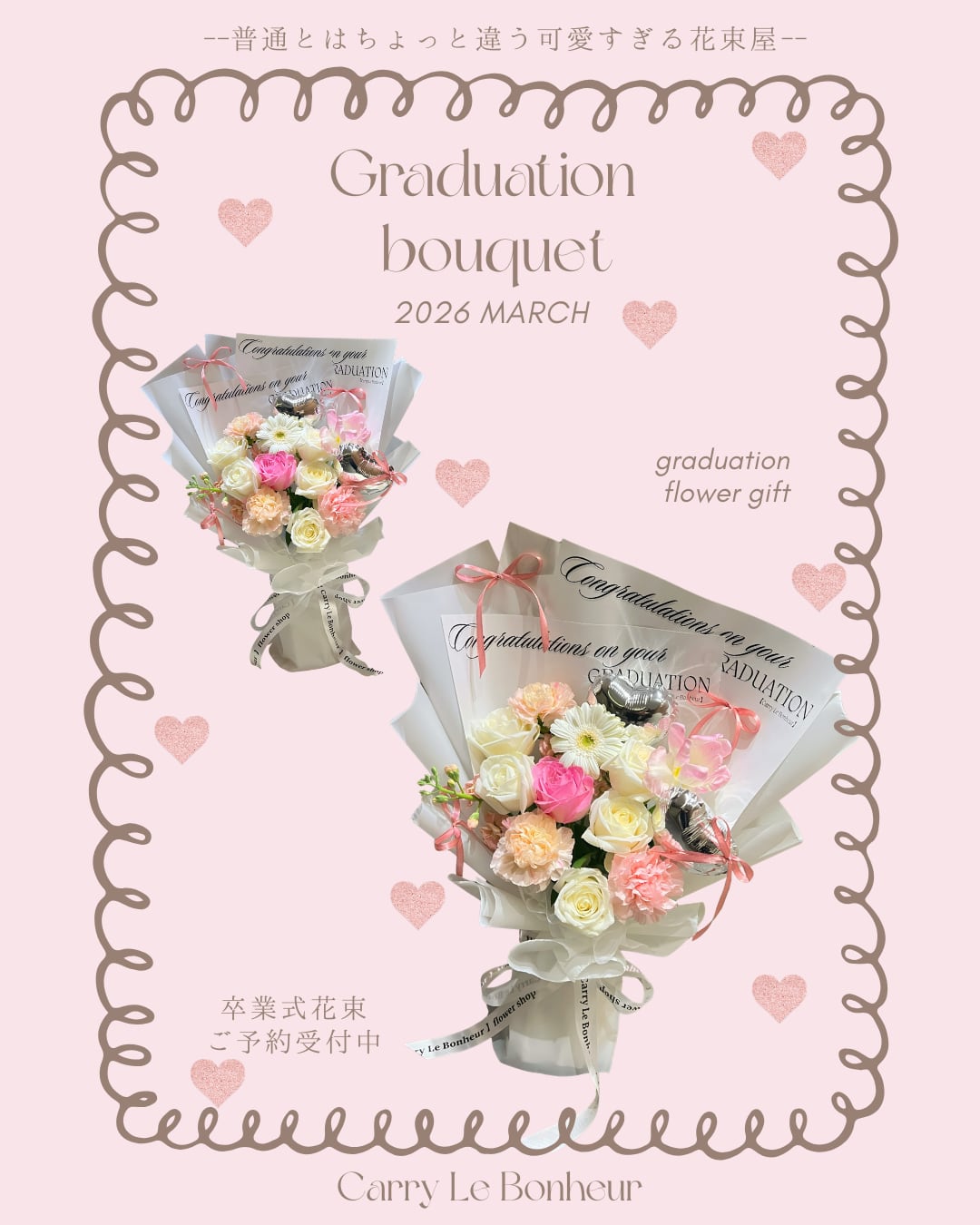 ※卒業メッセージ文字包装紙のご希望枚数が備考欄に記入ない場合は、こちらで花束に合うようにお作りさせて頂きます。