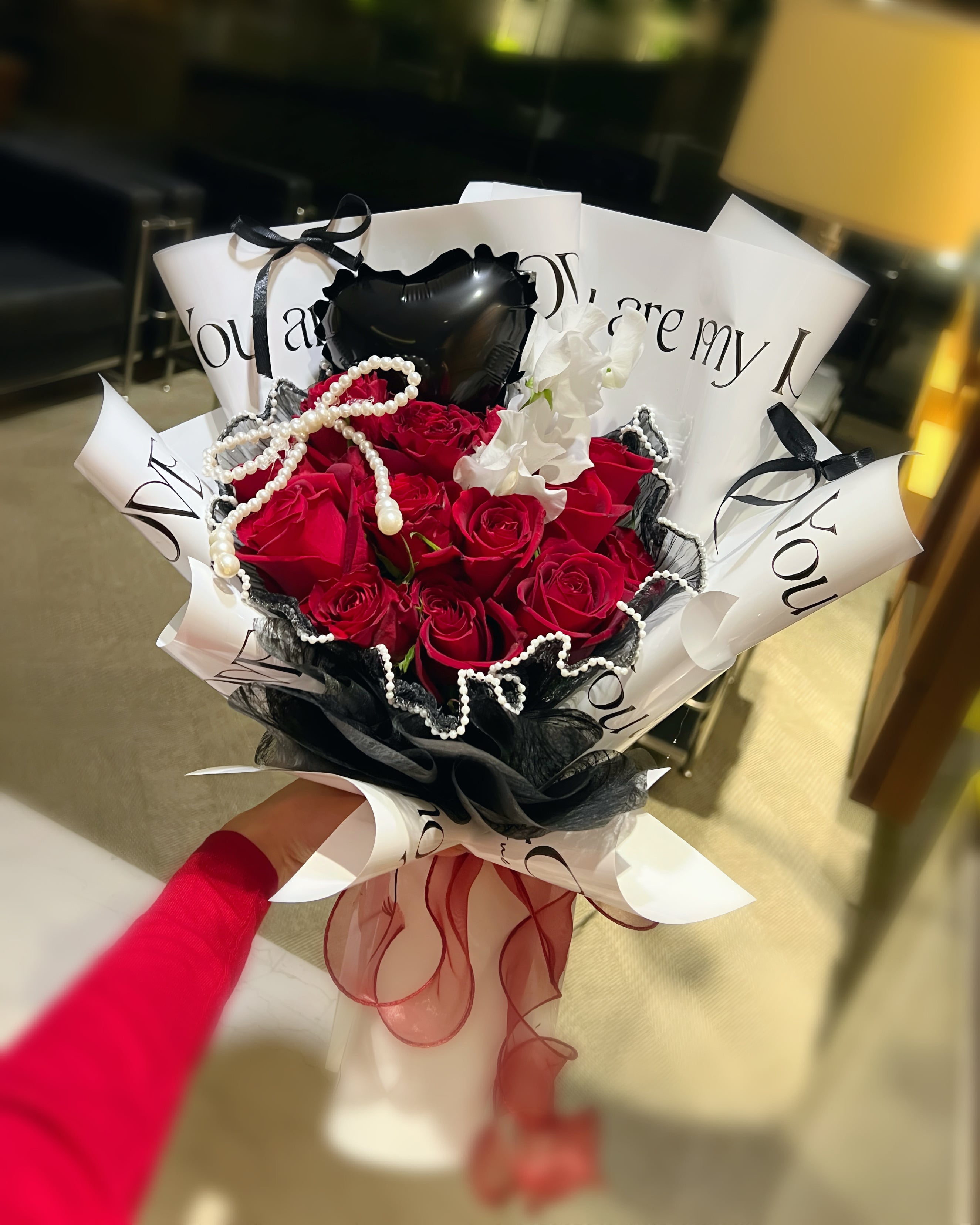 ♡LOVEロゴ包装紙のワンホンブーケ♡