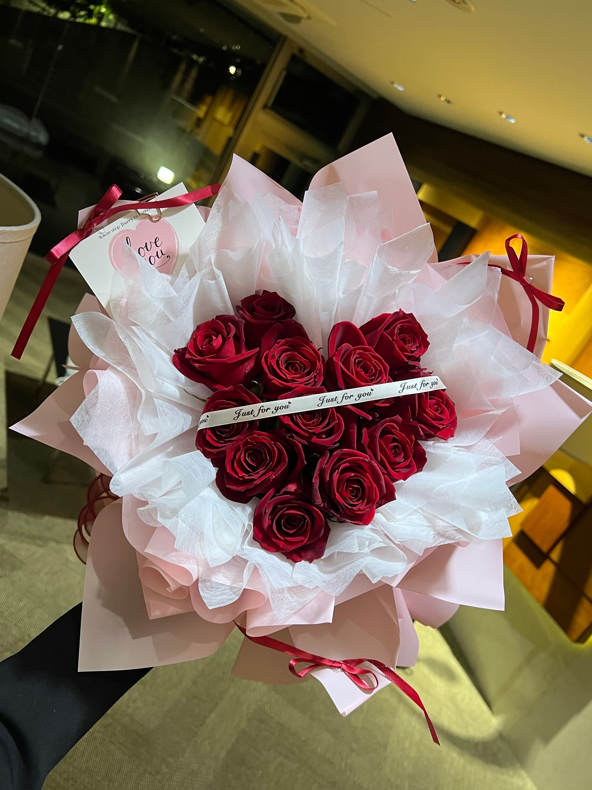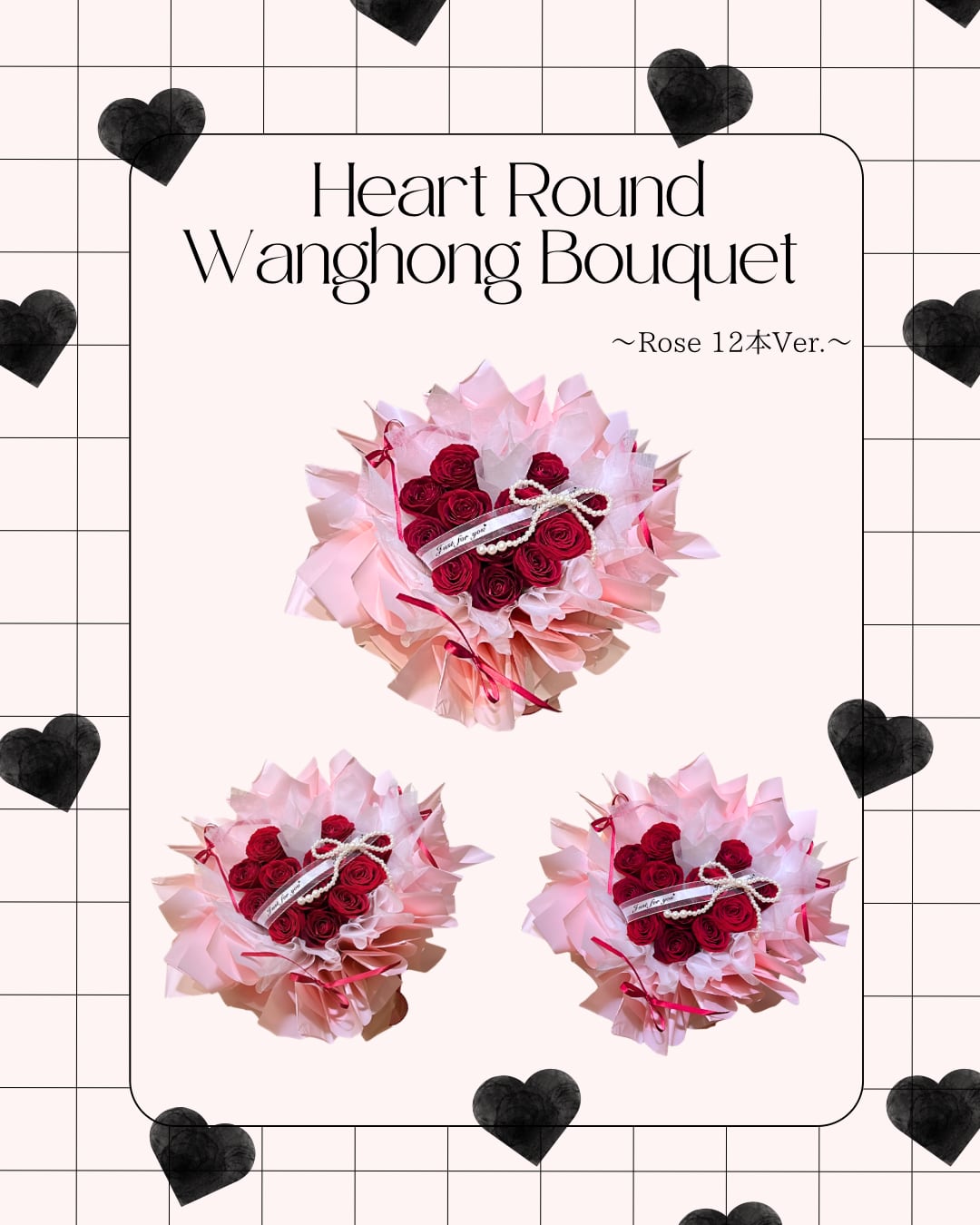 ♡ハート型ラウンドワンホンブーケ♡バラ12本【店舗受取用】